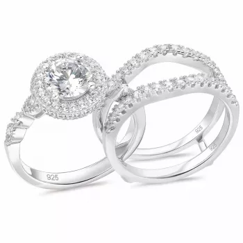 Genuine 925 Sterling Silver Round Shape Wedding Rings Set with AAAAA Cubic Zirconia