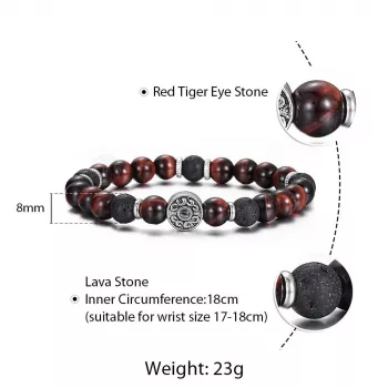 Red Tiger Eye & Black Lava Beaded Stretch Bracelet